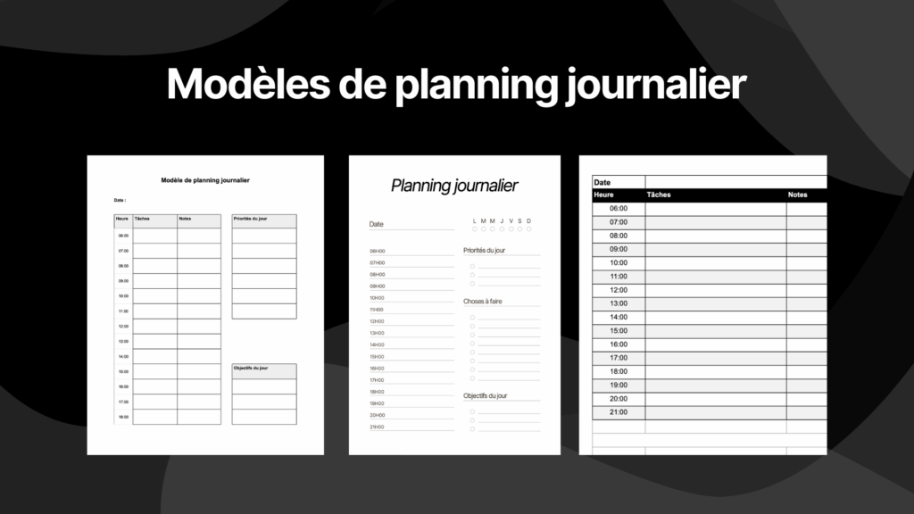 Vous cherchez un modèle de planning prêt à l’emploi pour organiser vos journées ? Voici un kit complet qui contient plusieurs templates adaptés à vos besoins. Vous y trouverez notamment :